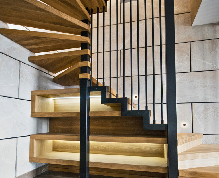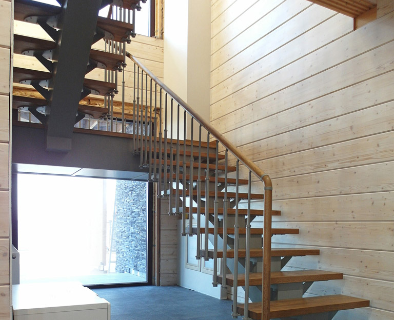 Лестницы на косоуре - отличное решения для частных домов, коттеджей, гостиниц, офисов и других коммерческих объектов. Такие лестницы универсальны, и могут быть смонтированы практически в любом помещении. Имеют широкие возможности декорирования. Не требуют крепления к стенам, легки в проектировании и монтаже, а также позволяют использовать различные материалы в любом ценовом диапазоне.
